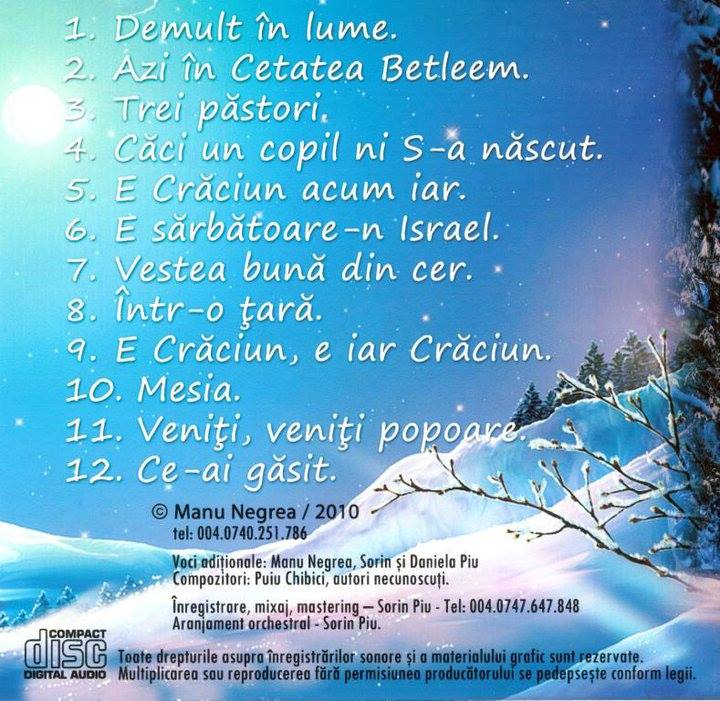 >> Descărcări | albumul Manu Negrea - E iar craciun (2010) | categoria Colinde Creștine | FiiLumina